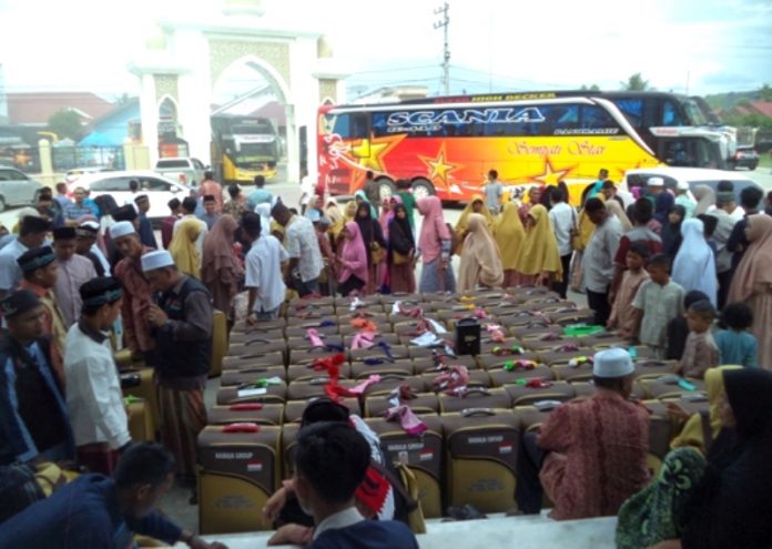 “Para jamaah Umrah Ramadhan diberangkatkan dari Masjid Agung Sultan Jeumpa Bireuen menumpang empat bus berbadan lebar, melalui Bandara Sultan Isklandar Muda (SIM) Banda Aceh.