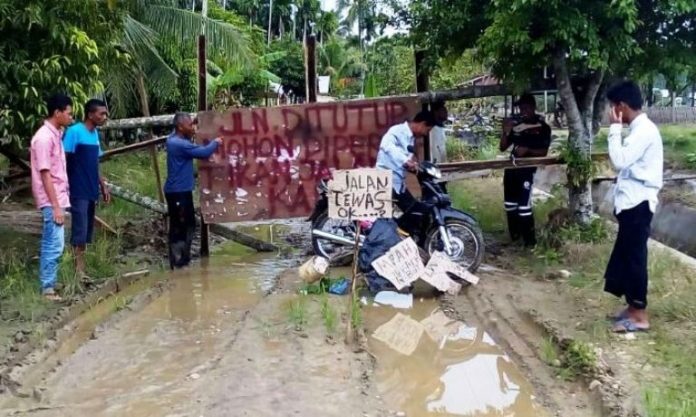 KABAR BIREUEN – Warga Desa Sukarame, Kecamatan Makmur, Kabupaten Bireuen, sejak pagi tadi, Rabu (15/11/2017), memblokir akses jalan menuju desa mereka. Masalahnya, jalan tersebut telah rusak parah, akibat sering dilalui truk pengangkut material jembatan rangka baja yang sedang dibangun di daerah tersebut.