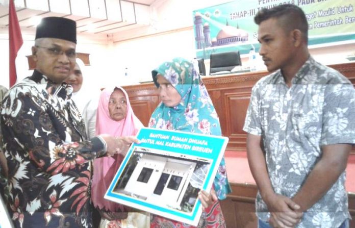 KABAR BIREUEN– Wakil Bupati Bireuen DR H Muzakkar Agani,SH, MSi menyerahkan secara simbolis Zakat Infaq dan Sadakah (ZIS) Tahap III 2018 kepada kepada 7.310 fakir msikin sebesar Rp 3.762.248.000, Kamis (27/12/2018) di Aula lama Setdakab Bireuen.