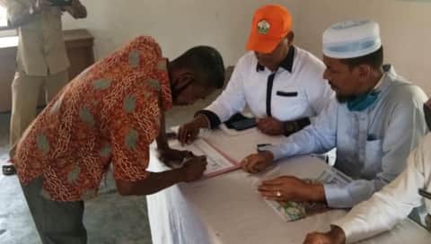 Petugas BMK Bireuen membawakan daftar penerima. Para penerima diminta untuk menandatangani daftar yang disediakan. Sementara dana ditransfer langsung ke rekening penerima di Bank Aceh Syariah Bireuen.