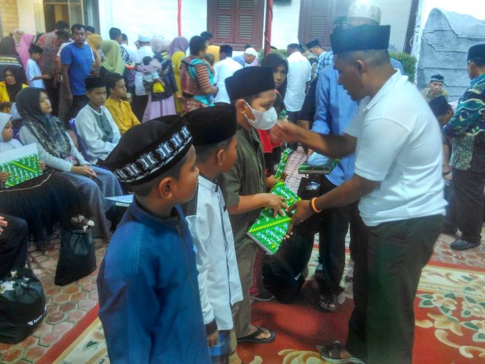 Penyaluran secara simbolis oleh Bupati Bireuen Dr. H. Muzakkar A. Gani, SH.,M,Si serta pejabat Forkopimda Bireuen dan pejabat instansi vertikal pada buka puasa bersama ASN Pemkab Bireuen di Pendopo Bireuen, Rabu, (27/04/2022).