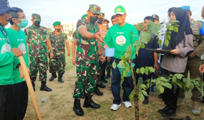 KABAR BIREUEN – Bupati Bireuen, Dr. H. Muzakkar A. Gani, SH., M.Si, bersama Panglima Kodam Iskandar Muda (Pangdam IM), Mayjen TNI Mohamad Hasan, menanam sejuta pohon internasional secara simbolis di pinggir Lapangan Cot Gapu, Bireuen, Rabu (26/1/2022) sore.