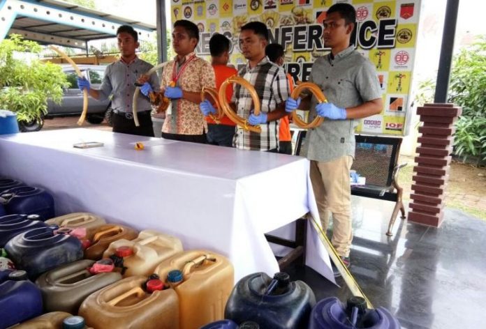 Kapolres Bireuen, AKBP Riza Yulianto, SH melalui Kasat Reskrim Iptu Riski Adrian, Kamis (5/4/2018) dalam konferensi pers dengan wartawan di Mapolres Bireuen, memaparkan, keberhasilan pihaknya mengungkap kasus penimbunan BBM bersubsidi jenis premium tersebut.