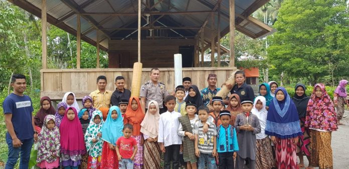 Pada kesempatan itu, Keuchik Gampong Alue Limeng, M Yusuf Daud yang baru saja dilantik menyampaikan terima kasih kepada Bripka Deni yang telah peduli untuk balai pengajian di gampongnya.