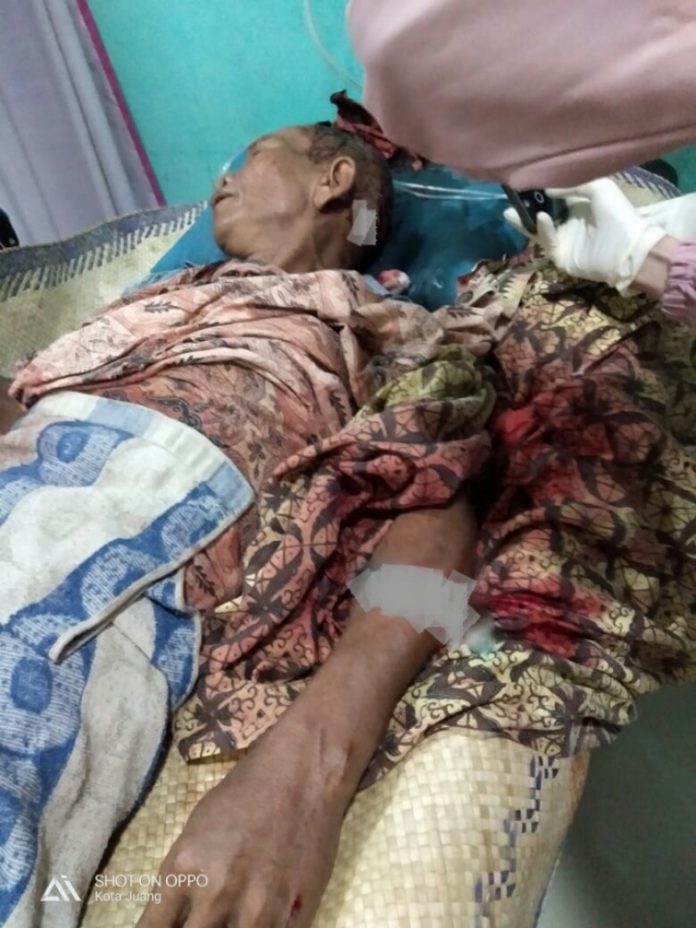 Tidak hanya itu, lengan tangan kiri Jufri juga mengalami luka yang mengakibatkan tangannya hampir putus.