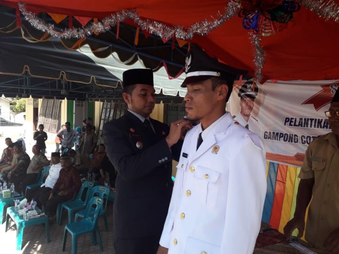 Prosesi pelantikan Keuchik Cot Bada Baroh periode 2018- 2024, berlangsung di halaman meunasah setempat, Senin (31/12/2018), dihadiri masyarakat dan unsur Muspika Peusangan.