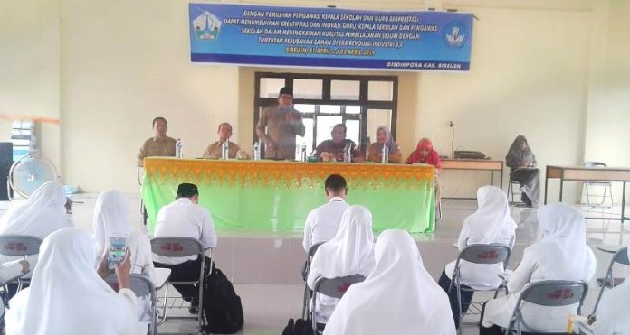 Kegiatan bertemakan Dengan Pemilihan Pengawas, Kepala Sekolah dan Guru Berprestasi dapat menumbuhkan kreatifitas dan inovasi Guru, Kepala Sekolah dan Pengawas Sekolah dalam meningkatkan kualitas pembelajaran sesuai dengan tuntutan perubahan zaman di era revolusi industri 4,0. berlangsung di Aula kantor Disdikpora setempat, Senin (1/4/2019).
