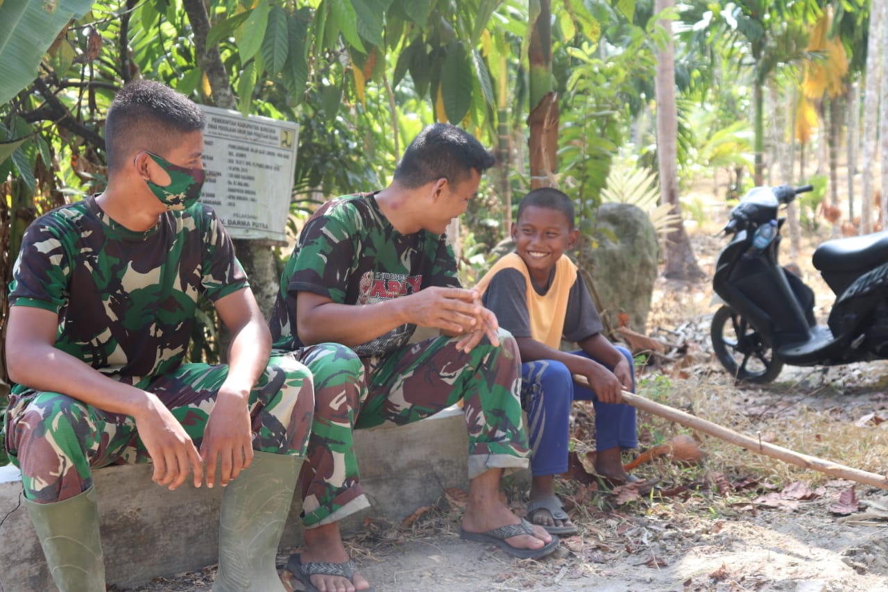Mereka terlihat akrab bersenda gurau dengan anggota Satgas TMMD disela-sela kesibukannya mengerjakan program TMMD di desa tersebut di hari Kedua pelaksanaan kegiatan tersebut, Rabu (3/3/2021).