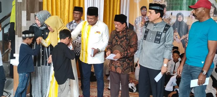 Amatan Kabar Bireuen, penyerahan santunan anak yatim, Mukhlis Takabeya didampingi istrinya Sadriah, Ketua DPD I Partai Golkar Aceh, T. M. Nurlif, Ketua DPW Partai Aceh Bireuen, Tgk Darwis Djeunib, Ketua DPRK Bireuen, Rusyidi Mukhtar, Anggota DPR Aceh, Ilham Akbar dan sejumlah anggota DPRK Bireuen dari Fraksi Golkar.
