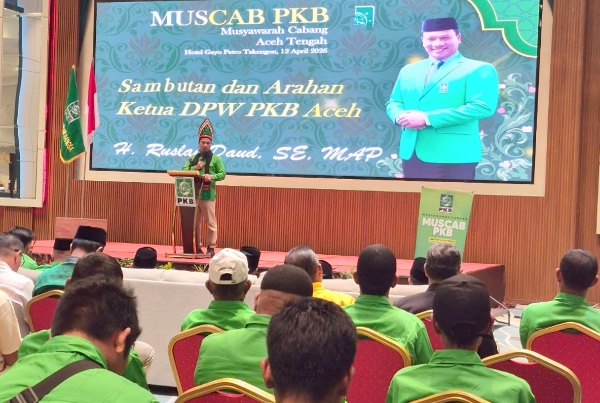 KABAR BIREUEN, Aceh Tengah — Ketua DPW PKB Aceh, H. Ruslan M. Daud (HRD), menegaskan pentingnya “politik kehadiran” bagi seluruh kader Partai Kebangkitan Bangsa (PKB) saat membuka Musyawarah Cabang (Muscab) PKB Aceh Tengah di Hotel Gayo Petro, Minggu (12/4/2026).