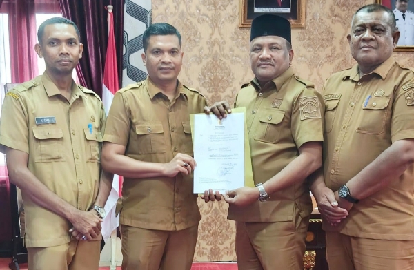 Surat Keputusan (SK) penunjukan Sekretaris Dinas Sosial Kabupaten Bireuen, Dr Alfian, MPd sebagai Plt Kepala Dinas (Kadis) Sosial diserahkan oleh Bupati Bireuen, Ir H. Mukhlis, ST di ruang kerjanya, Selasa (21/4/2026).