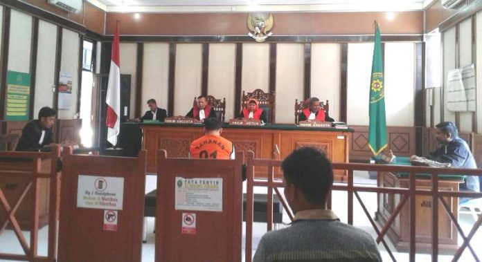 “Menjatuhkan pidana terhadap terdakwa dengan pidana penjara selama 2 tahun dikurangi selama terdakwa berada dalam tahanan dengan perintah terdakwa tetap berada dalam tahanan,” sebutnya.