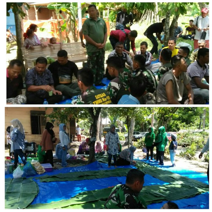 KABAR BIREUEN–Pengurus Persatuan Instri Prajurit (Persit), Kartika Chandra Kirana Cabang XXXV Kodim 0111/Bireuen, Bhayangkari Polres Bireuen dan Satgas TMMD ke-105 Kodim 0111/Bireuen makan bersama di lokasi TMMD di Desa Blang Perlak Kecamatan Makmur, Kabupaten Bireuen, Minggu (28/7/2019).