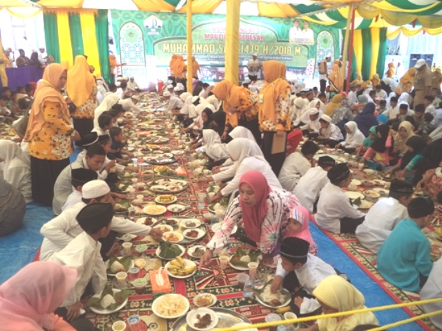 KABAR BIREUEN- Kenduri Maulid dalam rangka memperingati Maulid Akbar diselenggarakan Pemerintah Kabupaten Bireuen bersama jajarannya di halaman kantor Pusat Pemkab Cot Gapu Senin (12/3/2018) dihadiri belasan ribu tamu undangan.