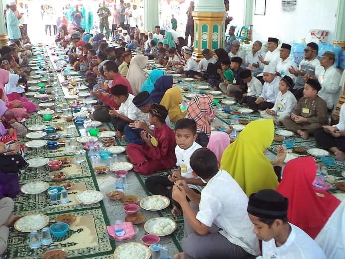 Amatan Kabar Bireuen usai jamuan makan siang para anak yatim dilanjutkan dengan penyerahan bingkisan istimewa dan sedekah uang tunai kepada 120 anak yatim diawali diserahkan Ketua Kerukunan Masyarakat Kota Bireuen Dr H Muzakkar A Gani,SH, M Si didampingi Bendahara Maulid, Jefri Nila.