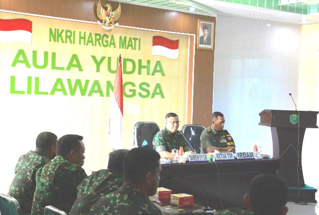 Selanjutnya pada kesempatan yang sama, Ketua Tim Kolonel Inf M. Abduh Ras, S.E, M.Tr menyampaikan, pengawasan merupakan tindakan preventif dalam rangka mengantisipasi kemungkinan terjadinya in-efisiensi disegala bidang.