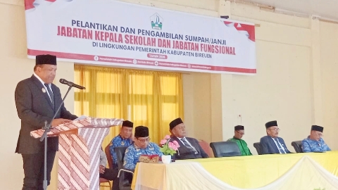 “Saya berharap saudara-saudara yang baru dilantik dapat bekerja dengan baik dan jujur untuk mewujudkan mutu pendidikan Kabupaten Bireuen ke arah yang lebih baik. Jangan hanya menjadi administrator, tetapi jadilah pemimpin pembelajaran yang visioner dan adaptif terhadap perkembangan zaman,” tegasnya.