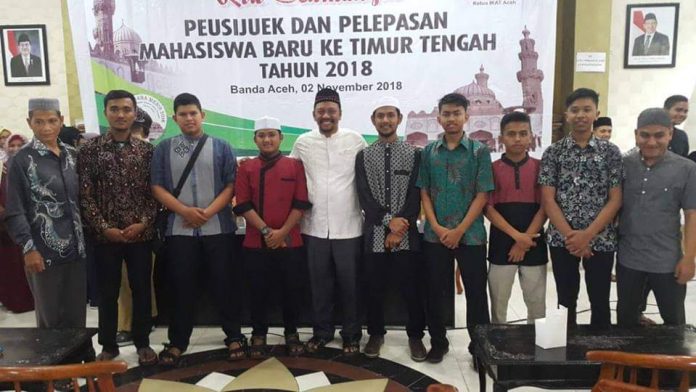 KABAR BIREUEN – Sebanyak 137 calon mahasiswa Universitas Al azhar Mesir asal Aceh mengikuti acara peusijuk sebelum berangkat ke Mesir, acara tersebut berlangsung di aula kantor wilayah Kementerian Agama Provinsi Aceh, Minggu (2/12/2018).