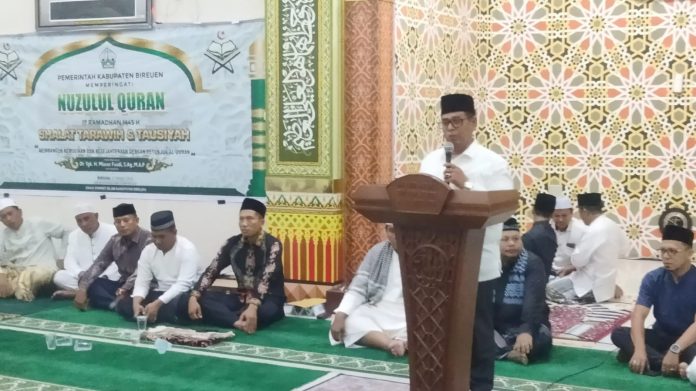 Peringatan Nuzulul Qur’an yang digelar Pemkab Bireuen melalui Dinas Syariat Islam (DSI) Bireuen dilaksanakan di Masjid Agung Sulthan Jeumpa Bireuen, Rabu malam (27/3/2024).