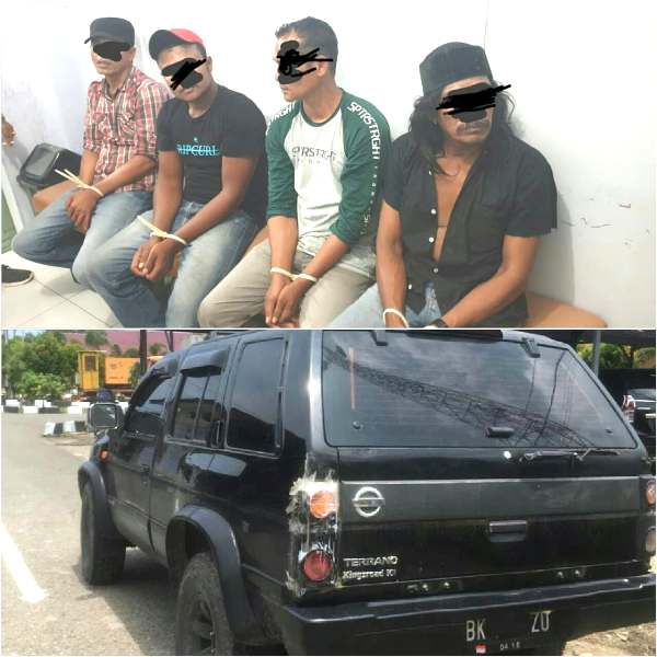 “Selanjutnya, sekira pukul 22.30 WIB ketika tim sedang melintasi Jalan Desa Bale Seutuy, polisi bertemu dengan empat laki-laki yang diduga ciri-cirinya seperti yang dilaporkan oleh masyarakat sering melakukan intimidasi.Lalu kita lakukan pemeriksaan badan dan penggeledahan terhadap mobil yang digunakan empat laki-laki tersebut,” ungkap Rendi.