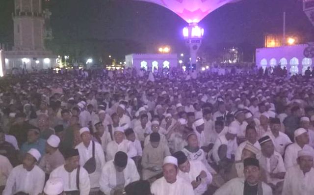 KABAR BIREUEN-Puluhan ribuan jamaah baik dari pengurus Tastafi, masyarakat maupun unsur lainnya yang datang dari berbagai daerah dan berbagi belahan dunia bertempat di halaman Masjid Raya Baiturrahman (MRB), Selasa malam, (17/4/2018) setelah salat Isya berjamaah.