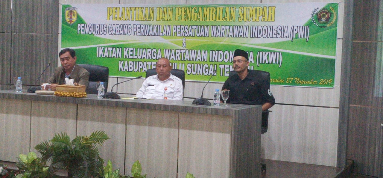 Pelantikan PWI dan Ikatan Keluarga Wartawan Indonesia (IKWI) Kabupaten Hulu Sungai Tengah dihadiri Bupati HST yang diwakili Asisten I Bidang Pemerintah Kabupaten HST, Ainur Rafiq bersama unsur forum koordinasi pimpinan daerah HST, Sekjend PWI Kalsel Yusni Hardi, Kepala Dinas SKPD HST, Camat se-Kabupaten HST.