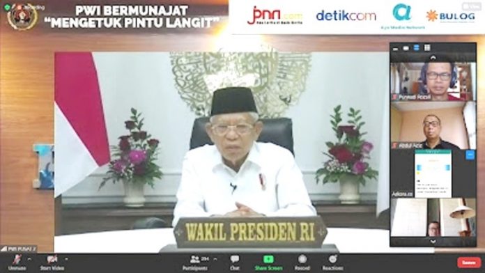 Wapres Ma’ruf Amin menyampaikan hal tersebut saat memberikan sambutan pada acara Persatuan Wartawan Indonesia (PWI) Bermunajat secara daring, Sabtu (24/7/2021).