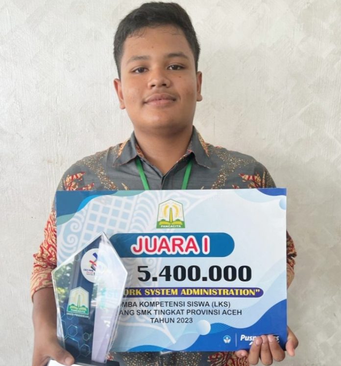 Sebagai juara pertama pada mata lomba IT Networking di tingkat provinsi, Farrel Mu’afi berhak mewakili Aceh di LKS-SMK tingkat nasional.