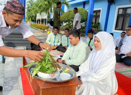 Penglepasan keberangkatan Farrel Mu’afi dilaksanakan di halaman sekolah tersebut, Jumat pagi (20/10/2023), dirangkai dengan zikir, doa bersama dan tepung tawari (peusijuek).