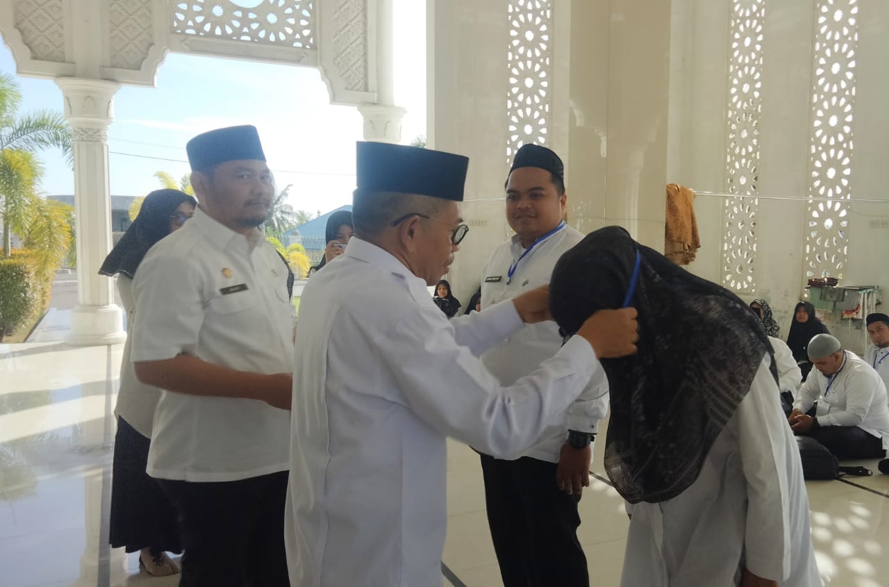 Prosesi pembukaan ditandai dengan penyematan tanda peserta secara simbolis oleh Asisten Administrasi Umum Zamri, SE didamping Kepala BKPSDM Bireuen, Zaldi AP, S.Sos.