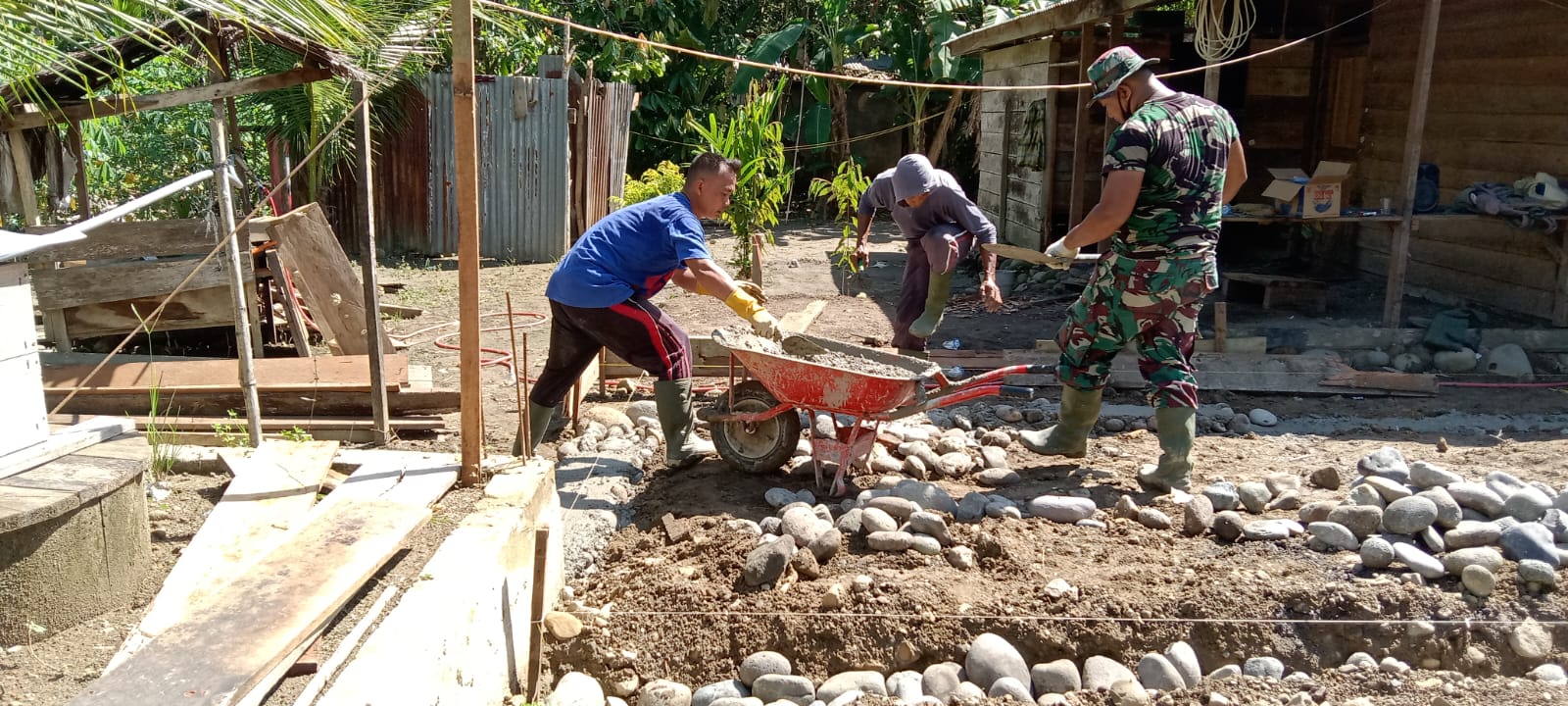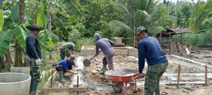 Inilah yang terlihat dari kekompakan warga dan TNI di TMMD 116, dalam pengecoran pondasi bangunan rumah milik Amiruddin di Desa Sirong Jaya, Kecamatan Jeumpa Kabupaten Bireuen, Jumat (12/05/2023).