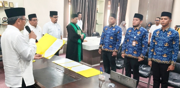 Hadir pada acara pelantikan itu, Asisten Administrasi Pembangunan, Mawardi, SSTP MSi, Plt Kepala BKPSDM, Drs. Fachrizal.