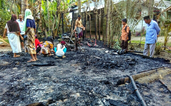 “Menurut keterangan korban, musibah tersebut diketahui setelah anaknya terbangun dan melihat api didinding rumah,” katanya.