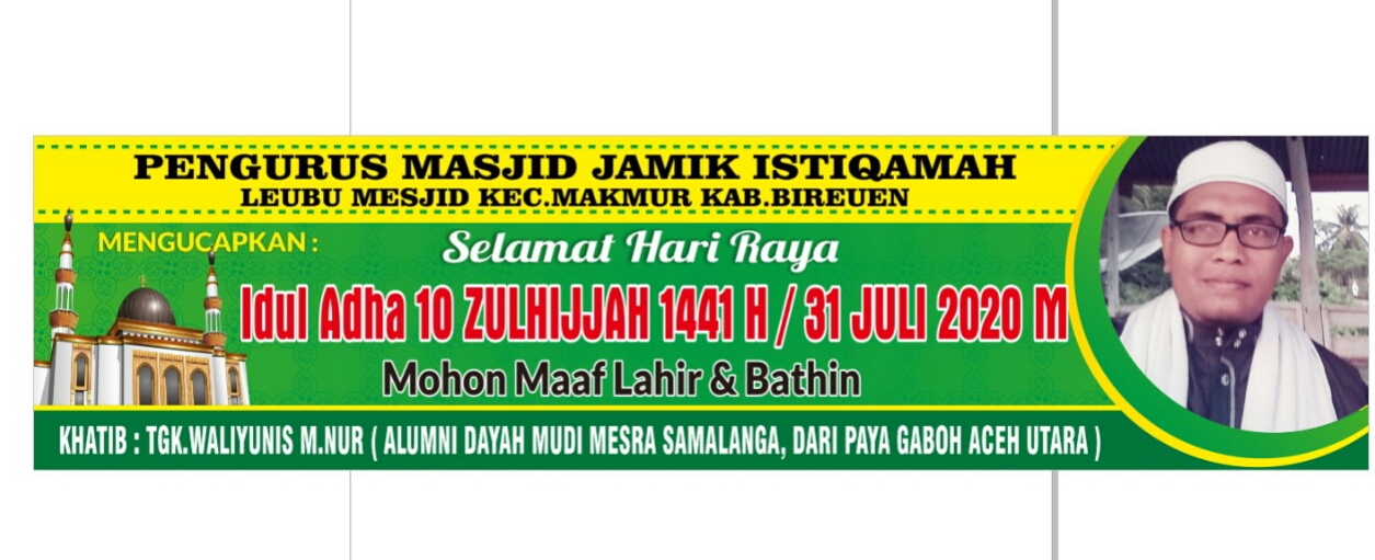 Berikutnya, Masjid Jamik Al- Munawarah, Teupin Siron, Gandapura, khutbah Hari Raya Qurban akan diisi oleh, Tgk.Sudirman Ismail dari Kecamatan Juli dan untuk Masjid Jamik Al-Ikhlas, Leubu Mee, Makmur yang menjadi Khatib yaitu, Tgk.Usman Matang Kumbang. (Faisal Ali)