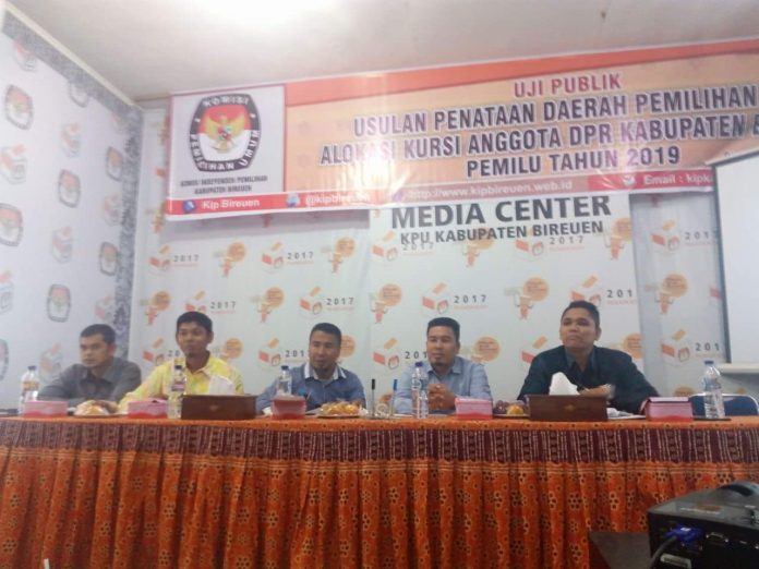 Hal itu terungkap pada acara Uji Publik Usulan Penataan Daerah Pemilihan dan Alokasi Kursi Anggota DPR Kabupaten Bireuen Dalam Pemilu Tahun 2019 di Aula Kantor KIP Bireuen, Kamis (25/1/2018).