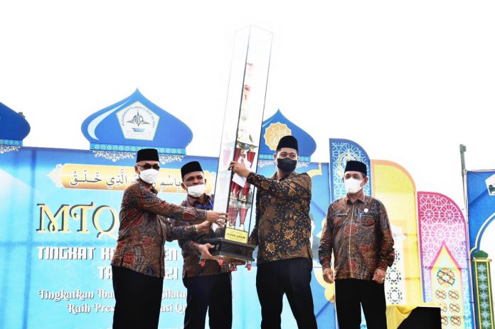 Piala Juara Umum MTQ XXXV Tingkat Kabupaten Bireuen ini, diserahkan langsung oleh Bupati Bireuen, Dr. H. Muzakkar A. Gani, SH., M.Si yang didampingi Sekretaris Daerah Ir Ibrahim Ahmad, M.Si dan Ketua Panitia MTQ, Anwar, S.Ag., M.A.P, kepada Camat Gandapura, Mirza Fahmi, S.STP, M.Si, di panggung utama MTQ, kompleks Masjid Agung Sultan Jeumpa Bireuen, Senin (2/8/2021) sore.
