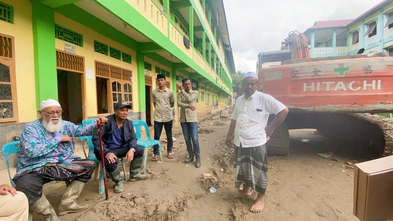 Pantauan di lapangan, HRD bersama tim relawan PKB tampak ikut bergelut dengan lumpur setinggi lutut orang dewasa yang menutupi pekarangan, ruang belajar, hingga tempat ibadah di sejumlah dayah.