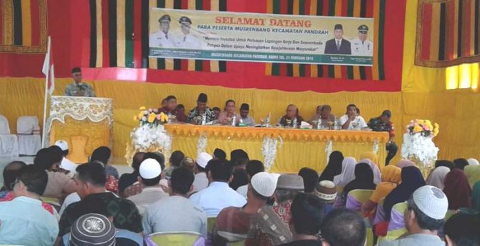KABAR BIREUEN-Wakil Bupati Bireuen, Dr. H. Muzakkar A. Gani, SH, M.Si menghadiri Musrembang Kecamatan Pandrah yang berlansung di Gedung Serba Guna Kecamatan setempat. Kamis (21/2/2019).
