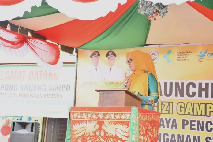 KABAR BIREUEN – Wakil Ketua Tim Penggerak Pembinaan Kesejahteraah Keluarga (TP PKK) Aceh, Dr Dyah Erti Idawati MT, meresmikan dan melaunching Rumoh Gizi Gampong (RGG) di Gampong Krueng Simpo, Kecamatan Juli, Kabupaten Bireuen.